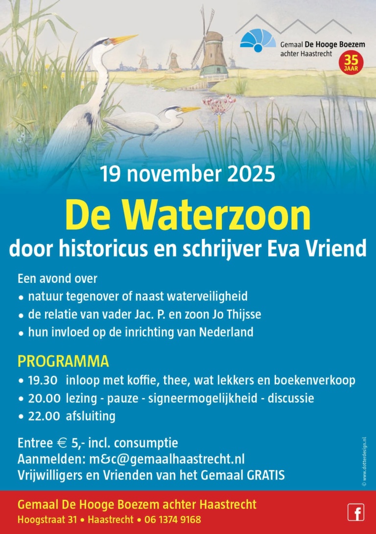 Aanmelden kan via m&c@gemaalhaastrecht.nl o.v.v. lezing water en je mobiele nummer of via de gele button op de homepage van www.gemaalhaastrecht.nl. De entree is € 5,00 en met koffie of thee en koek.