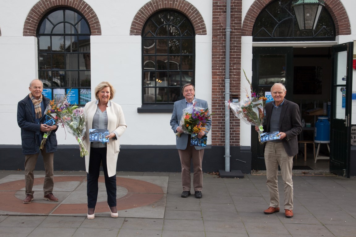 Een jubileumfeest zit er dit jaar niet meer in. Vandaar dat de bestuursleden van het Gemaal persoonlijk de vrijwilligers van het Gemaal het boekje met een attentie bezorgen.